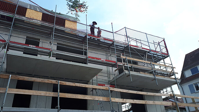 Es wird Richtfest gefeiert für den Neubau eines 9-Familienhaus in Fellbach. Die Bauarbeiten schreiten zügig voran, parallel beginnt der Fenstereinbau, die Grobinstallation Elektro und Sanitär läuft etc.